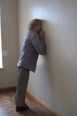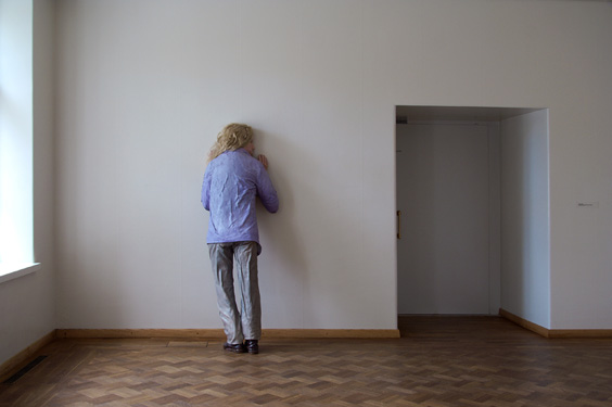 Mies / Man 2008 alkydi ja öljy kankaalle, hartsikäsitelty savi, polyuretaani, kengät ja tekohiukset alkyd and oil on canvas and resin-treated clay, polyurethane, shoes and artificial hair
