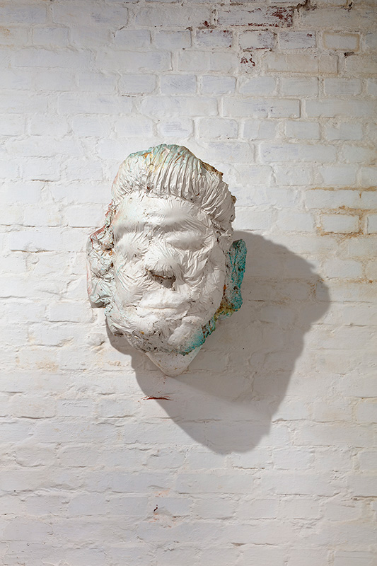 Pää, 2025 puu, polyuretaani, kipsi, akryyliväri 83 x 47 x 35 cm |