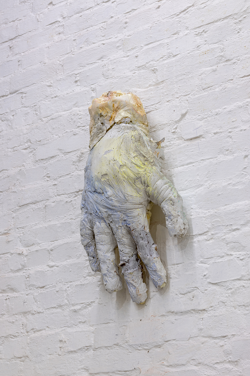 Käsi, 2025 puu, kipsi, akryyliväri 54 x 37 x 11 cm |